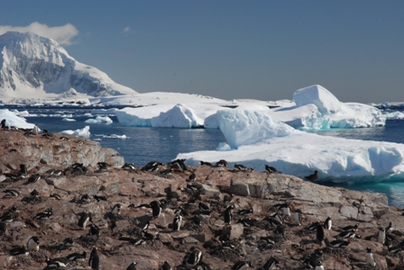 Même si elles sont situées aux antipodes de la Terre, les régions polaires sont particulièrement touchées par le réchauffement climatique. Ici, Une colonie de manchots paresse au soleil, lors du printemps antarctique, sur l'île Cuverville.