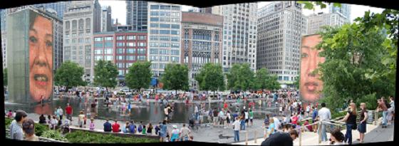 Saisissant contraste entre ces deux photos. L’une est celle de la Crown Fountain de Jaume Plensa, dans le Millennium Park de Chicago (É-U). Les deux tours projettent les visages des citoyens de la ville. En saison, c’est de leurs bouches que jaillit l'eau de la fontaine, clin d'oeil moderne au concept des gargouilles, et cela pour le plus grand plaisir des habitants qui aiment venir s’y rassembler et s’y rafraîchir. La seconde photo provient de l’État du Michoacán au Mexique. Elle a été capturée au détour d’un voyage, la même année que la première en 2008, pourtant elle semble échappée d’un autre temps.