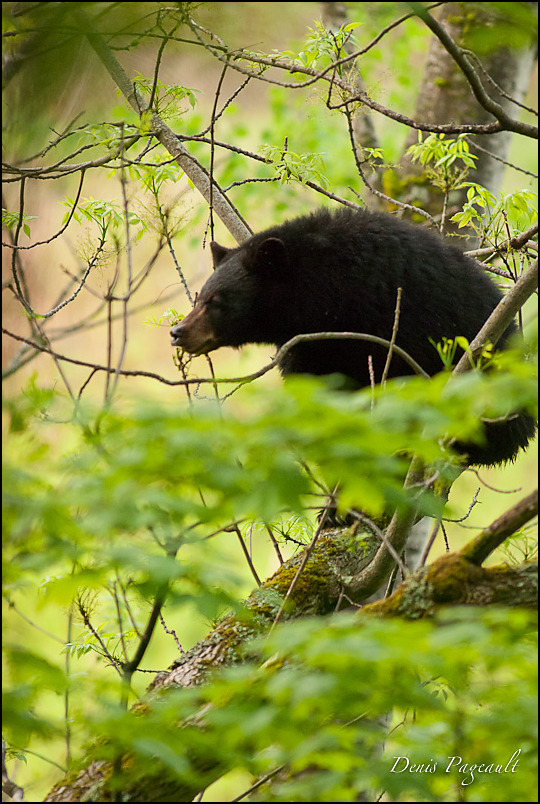 Omnivore, il se nourrit essentiellement de végétaux (feuilles, bourgeons, etc.) et de leurs fruits (des faines par exemple), mais lorsqu’il en trouve, il ne dédaigne pas les insectes et les charognes. Comme beaucoup d'autres d'espèces, quand elle est prévenue de notre approche, elle saura s'éloigner pour éviter les mauvaises rencontres. Cette photo a été prise dans la région du Mont Sainte-Anne.
